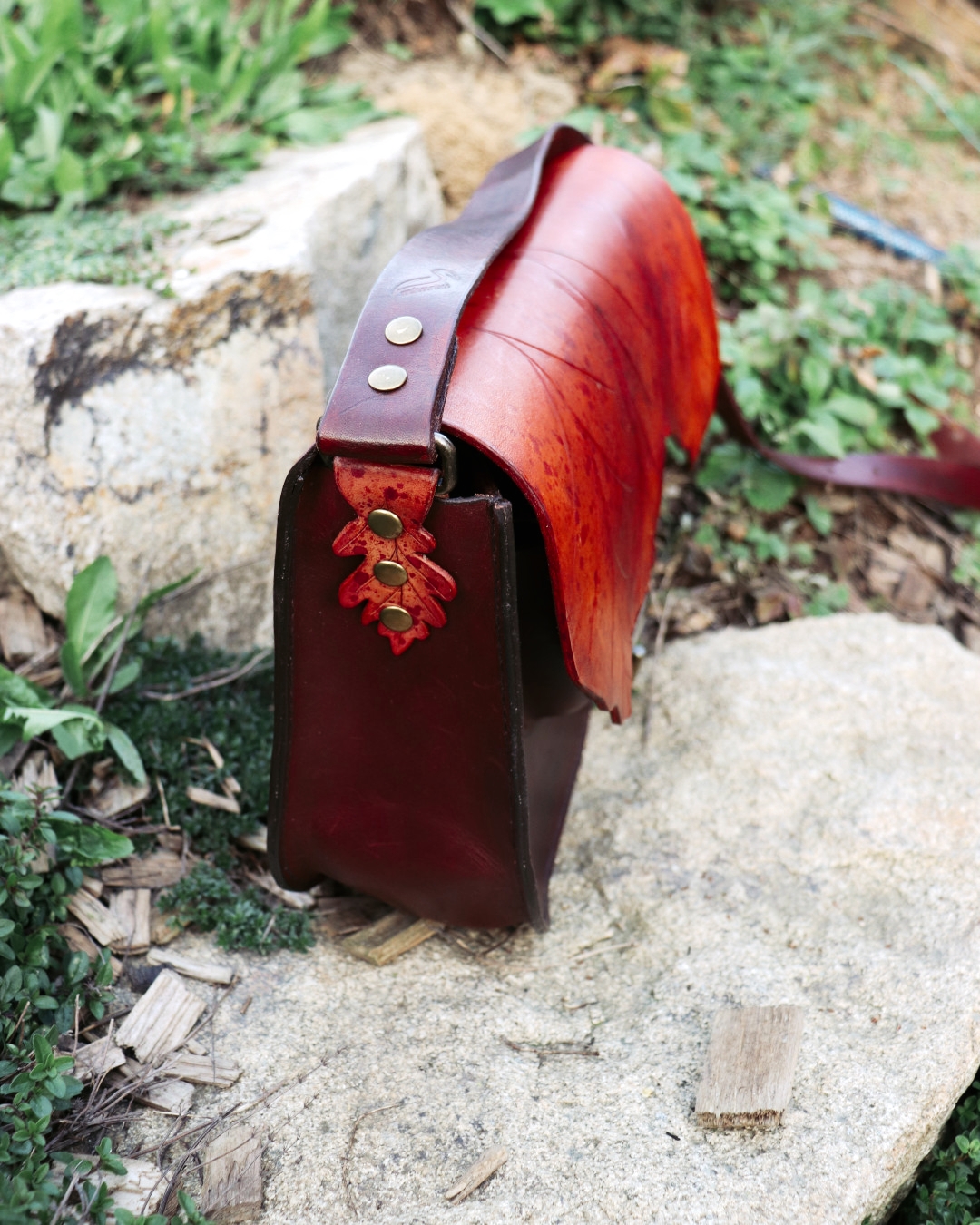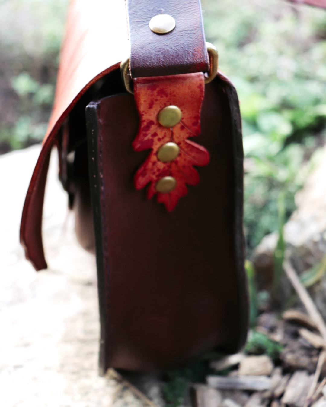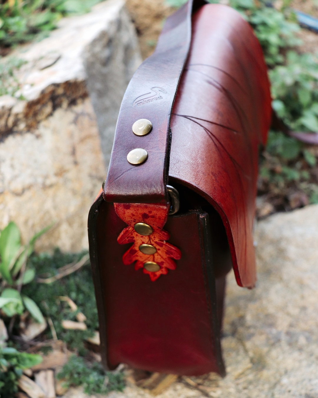 Kabelka z (půl)elfí dílny je vyrobena z ručně barvené a precizně zdobené kůže, každým kouskem odrážející řemeslnou péči a jemnost elfské estetiky. Na přední straně najdete praktickou kapsu na drobnosti, uvnitř pak kapsu na zip pro vaše nejvzácnější poklady a karabinku pro bezpečné uchycení amuletu či klíčů od světského oře. Design kabelky je inspirován dubovými listy, jejichž jemné neutrální tóny doplňují syté červené akcenty a staromosazné detaily.