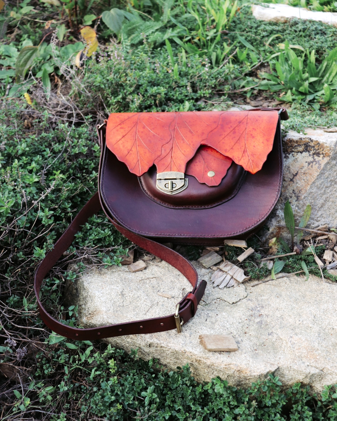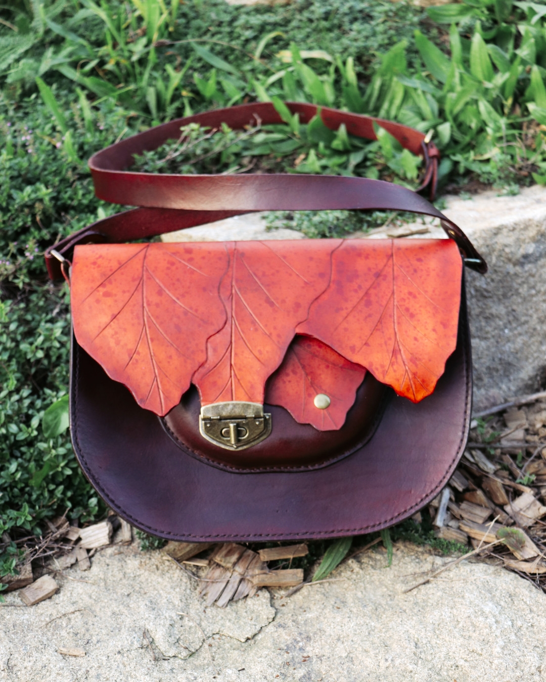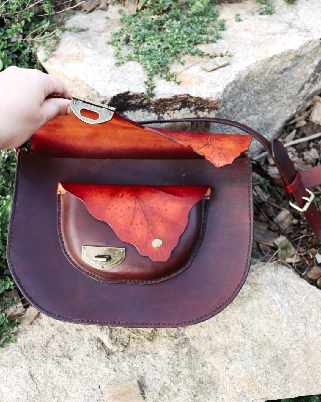 Kabelka z (půl)elfí dílny je vyrobena z ručně barvené a precizně zdobené kůže, každým kouskem odrážející řemeslnou péči a jemnost elfské estetiky. Na přední straně najdete praktickou kapsu na drobnosti, uvnitř pak kapsu na zip pro vaše nejvzácnější poklady a karabinku pro bezpečné uchycení amuletu či klíčů od světského oře. Design kabelky je inspirován dubovými listy, jejichž jemné neutrální tóny doplňují syté červené akcenty a staromosazné detaily.
